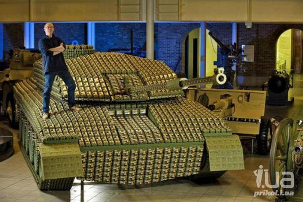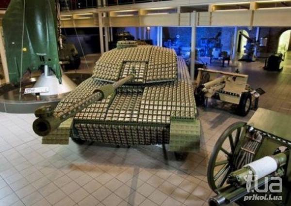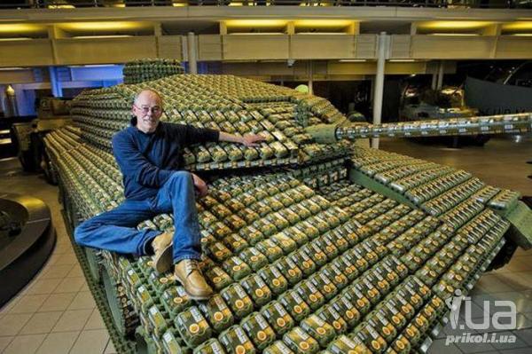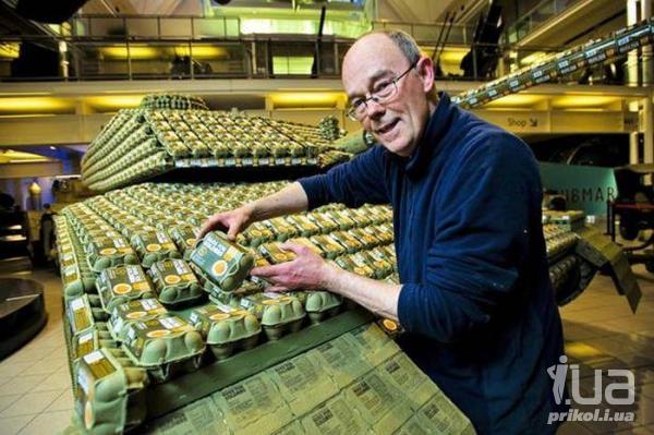 Вот такой танк соорудил коллекционер оружия из Ирландии. Танк склеен из коробок из под яиц. На создание танка понадобилось 540 коробок