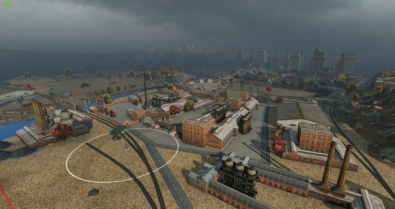 Одна из баз находится на территории завода. Практически внутри индустриальной части карты. Мост о котором мы расскажем чуть ниже вплотную граничит с кругом захвата.