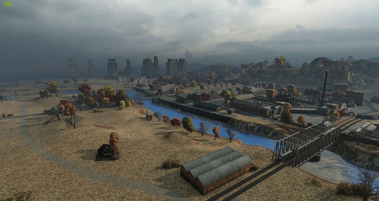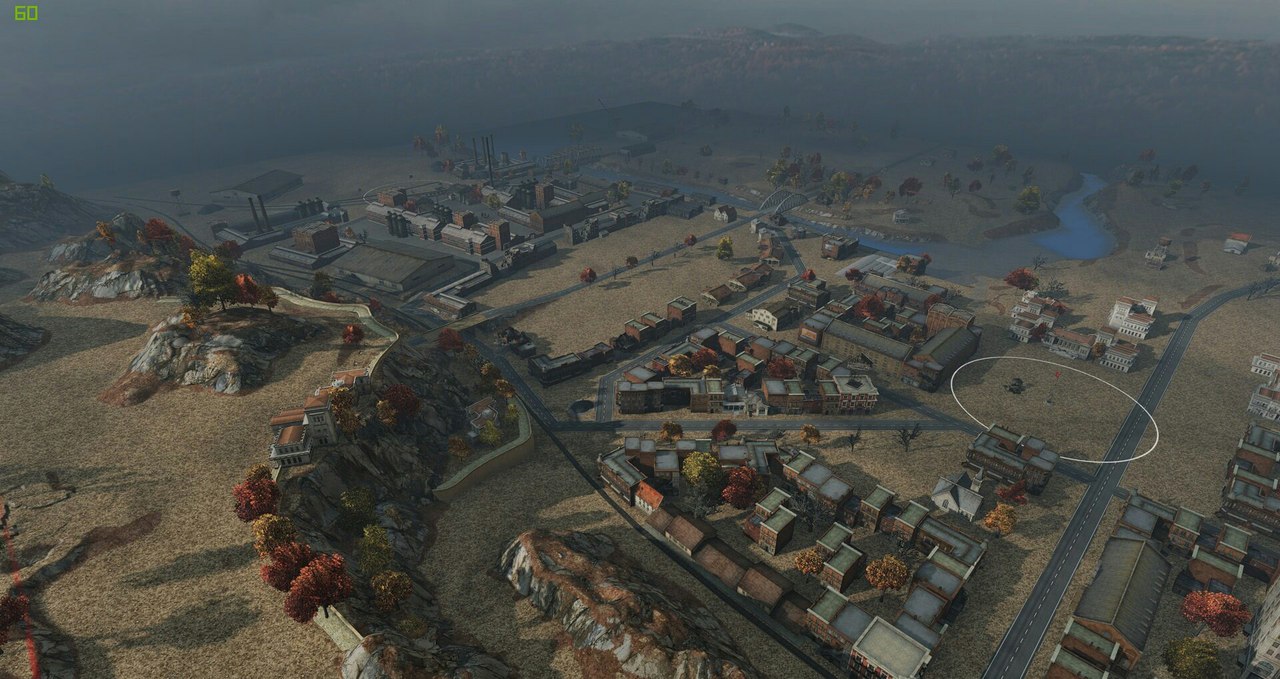 Панорама открывается интересная. Обратите внимание на длинные прямые улицы, которых так много в городской части игровой локации. Прострелы будут частым явлением.