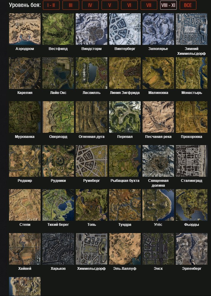Вот точная информация, какие карты выпадают на каких уровнях танков в WOT
