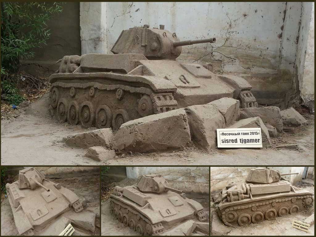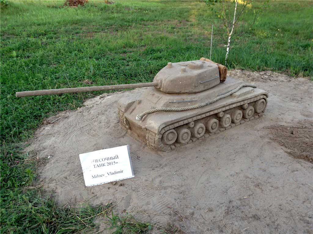 Фото отчет результатов конкурса "Песочные танк", который проходил этим летом. Здесь 6 фотографий самых лучших танков из песка. Каждый участник получил заслуженный приз за создание песочного танка.