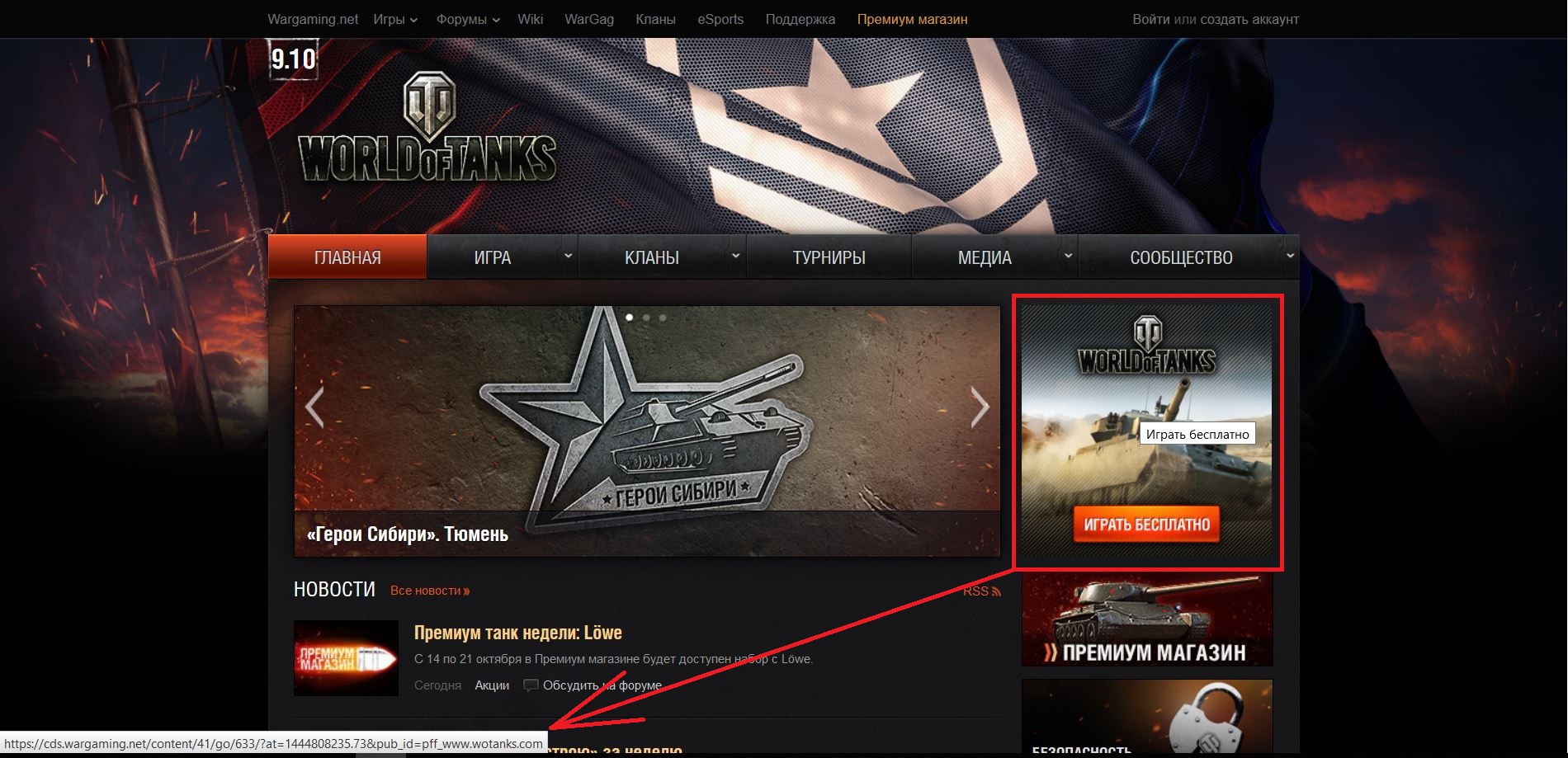 Обратили внимание, что главная страница официального сайта World of Tanks отслеживает переходы с нашего сайта и клики по баннеру регистрации в игре Мир танков.