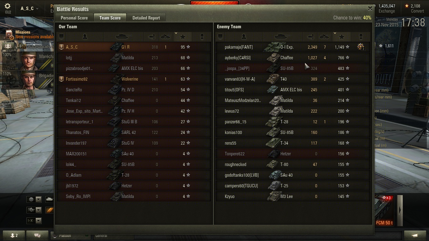 Бой с шансом на победу в 40% закончился сокрушительным поражением со счетом уничтоженных танков 15:2.