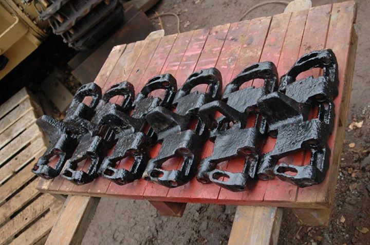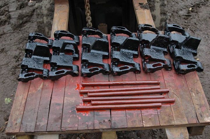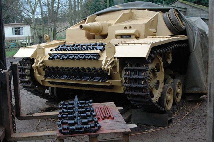 Заключительный этап работы по реставрации немецкой пт-сау StuG III Ausf.D - покраска гусениц с целью защиты от коррозии. Соединительные "пальцы" перед сборкой траков выкрасили в красный цвет.