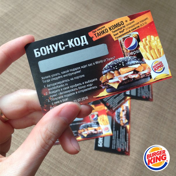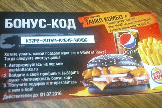Раздача бонус кодов на World of Tanks в Burger King'е
