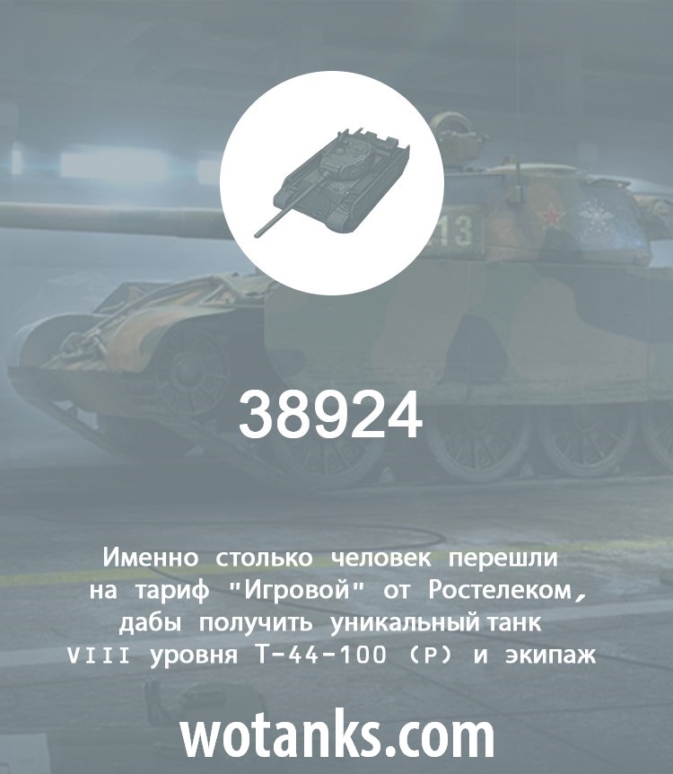 При подключении или переходе на новый тарифный план абонент получит специальный бонус от компании Wargaming: в игре World of Tanks у него появится эксклюзивный советский танк Т-44-100 (Р) и атрибуты к нему — экипаж, навык «Боевое братство» (позволяет улучшить характеристики танка в бою), слот в ангаре, эмблемы войск связи СССР и три вида камуфляжа для танка, рассказал главный операционный продюсер Wargaming Антон Панков. Танк будет доступен только абонентам нового тарифного плана «Ростелекома», хотя видеть его будут все игроки World of Tanks, уточнил Панков. Wargaming рассчитывает, что в течение года на новый тариф перейдут не менее 1 млн абонентов (это около 9% от всех частных пользователей фиксированного интернета «Ростелекома»). В «Ростелекоме» этот прогноз не комментируют.