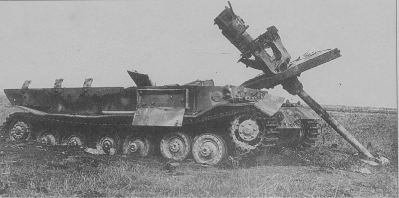 … Единственным достойным противником тяжелых немецких самоходок оказалась советская СУ-152. Полк СУ-152 обстрелял 8 июля 1943 года атакующие «Фердинанды» 653-го дивизиона, подбив при этом четыре вражеские машины. Всего же в июле — августе 1943 года немцы потеряли 39 «Фердинандов». Последние трофеи достались Красной Армии на подступах к Орлу — на железнодорожной станции было захвачено несколько подготовленных к эвакуации поврежденных штурмовых орудий…