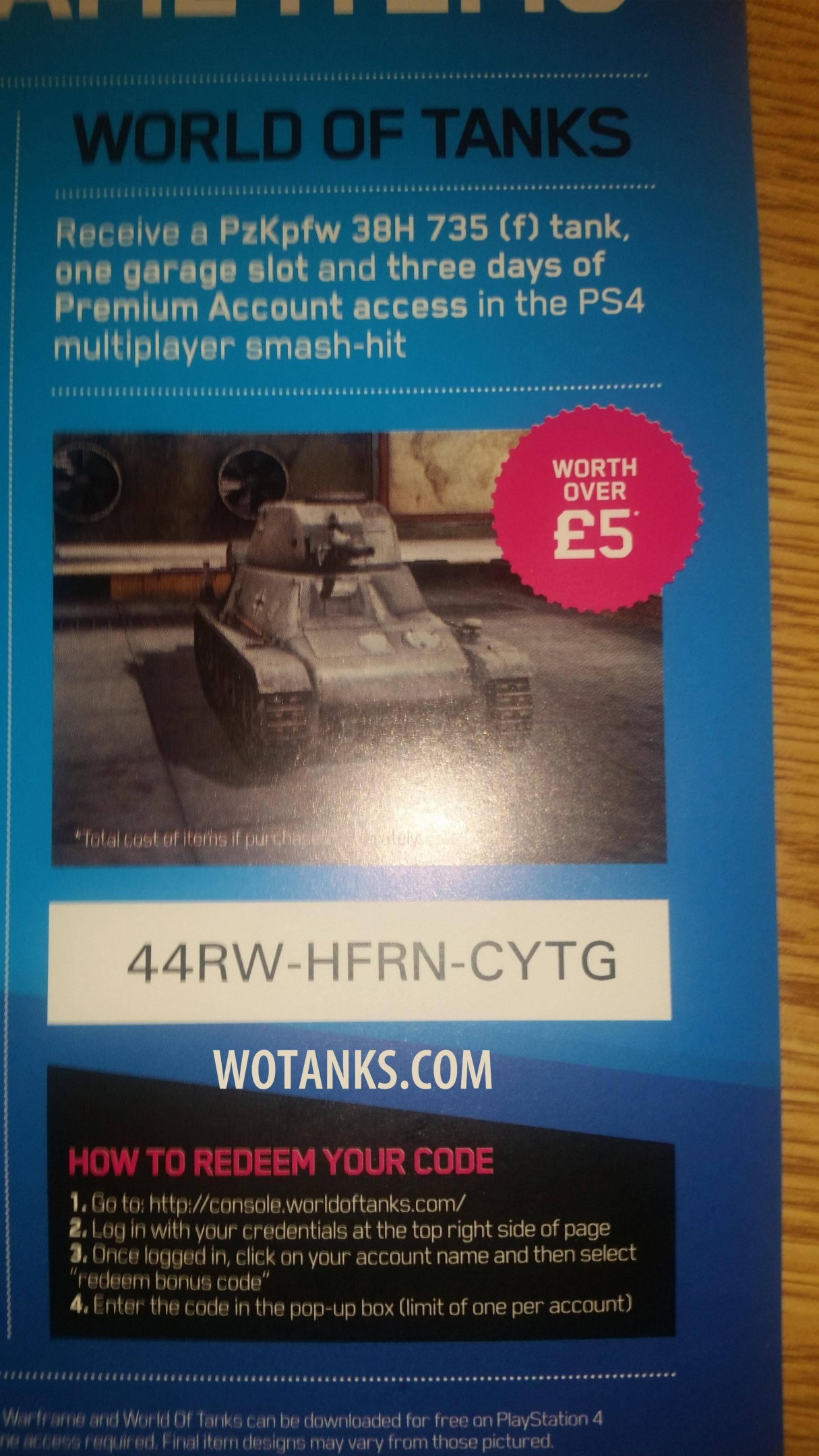 Бонус код на World of Tanks для PlayStation 4 на апрель 2016 действующий раздача сегодня