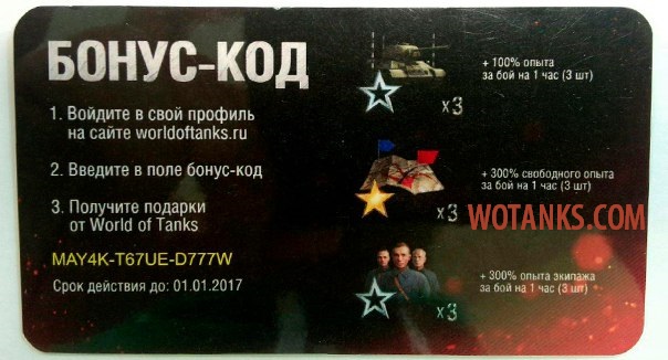 Бесплатный бонус-код для World of Tanks на май 2016 действующий раздача сегодня