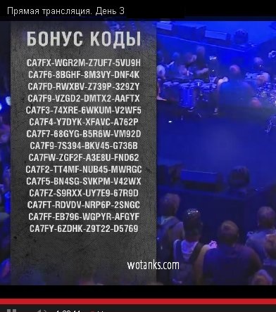 Вот еще список бонус кодов с прямой трансляции события World of Tanks. Их показывали несколько секунд, проверяйте: