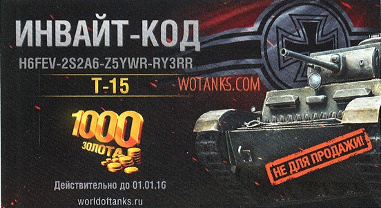 Новый бонус код для World of Tanks на январь 2016 действующий