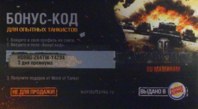 бонус-код от бургеркинга для world of tanks на январь 2016