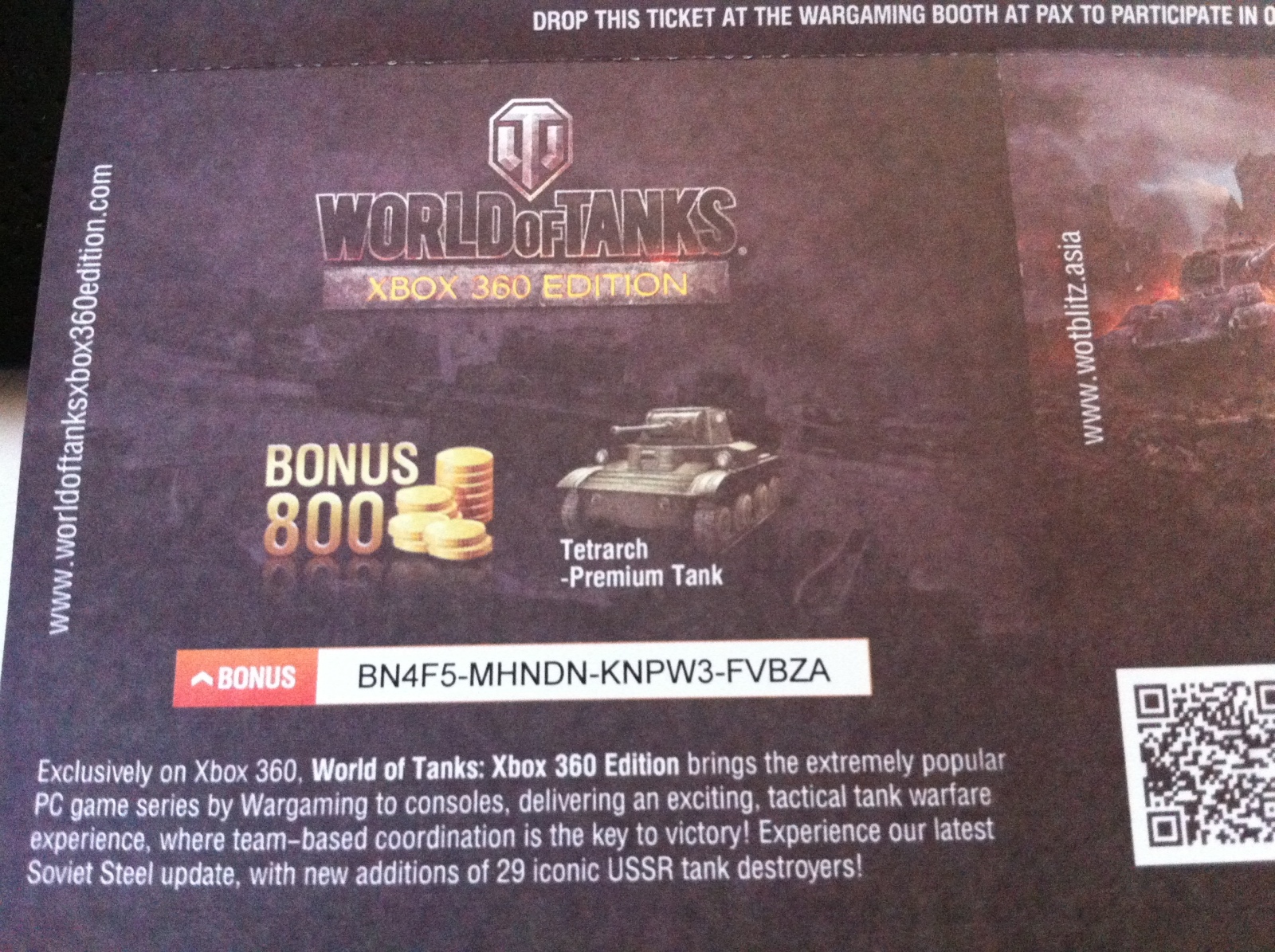 Бонус код на танк Тетрарх и 800 золота для игроков World of Tanks на XBox 360