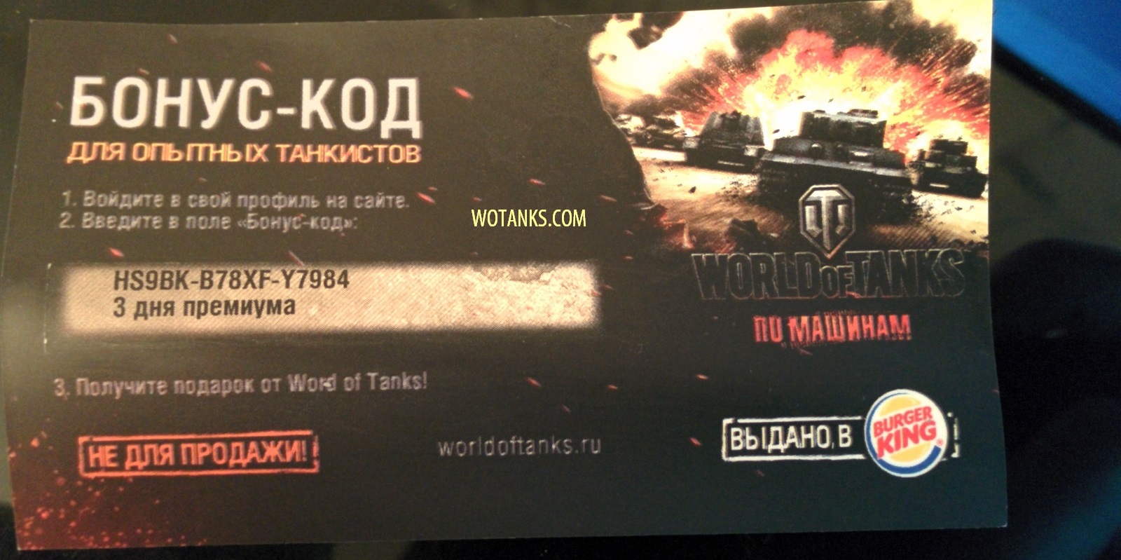 Халявный действующий бонус код для World of Tanks на февраль 2016