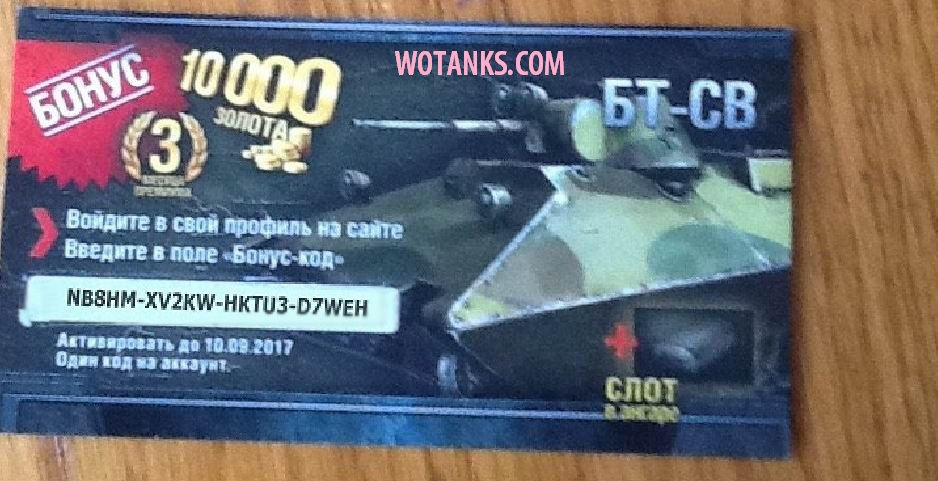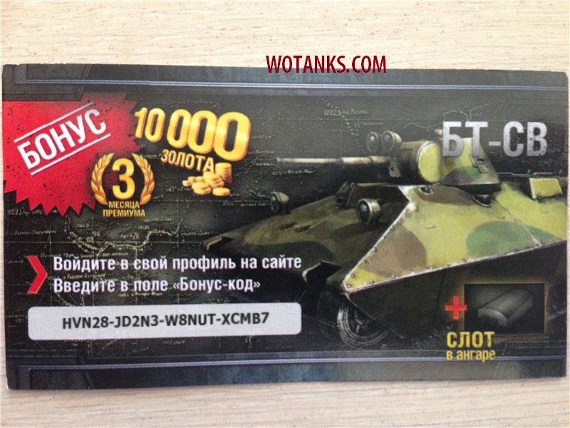 Бонус код для World of Tanks на танк БТ-СВ, 10000 золота и 3 месяца премиум аккаунта: