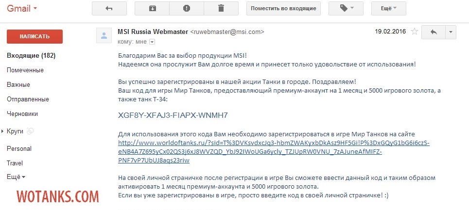 Бонус код на World of Tanks от MSI на 5000 золота и 1 месяц премиум аккаунта, забирайте: