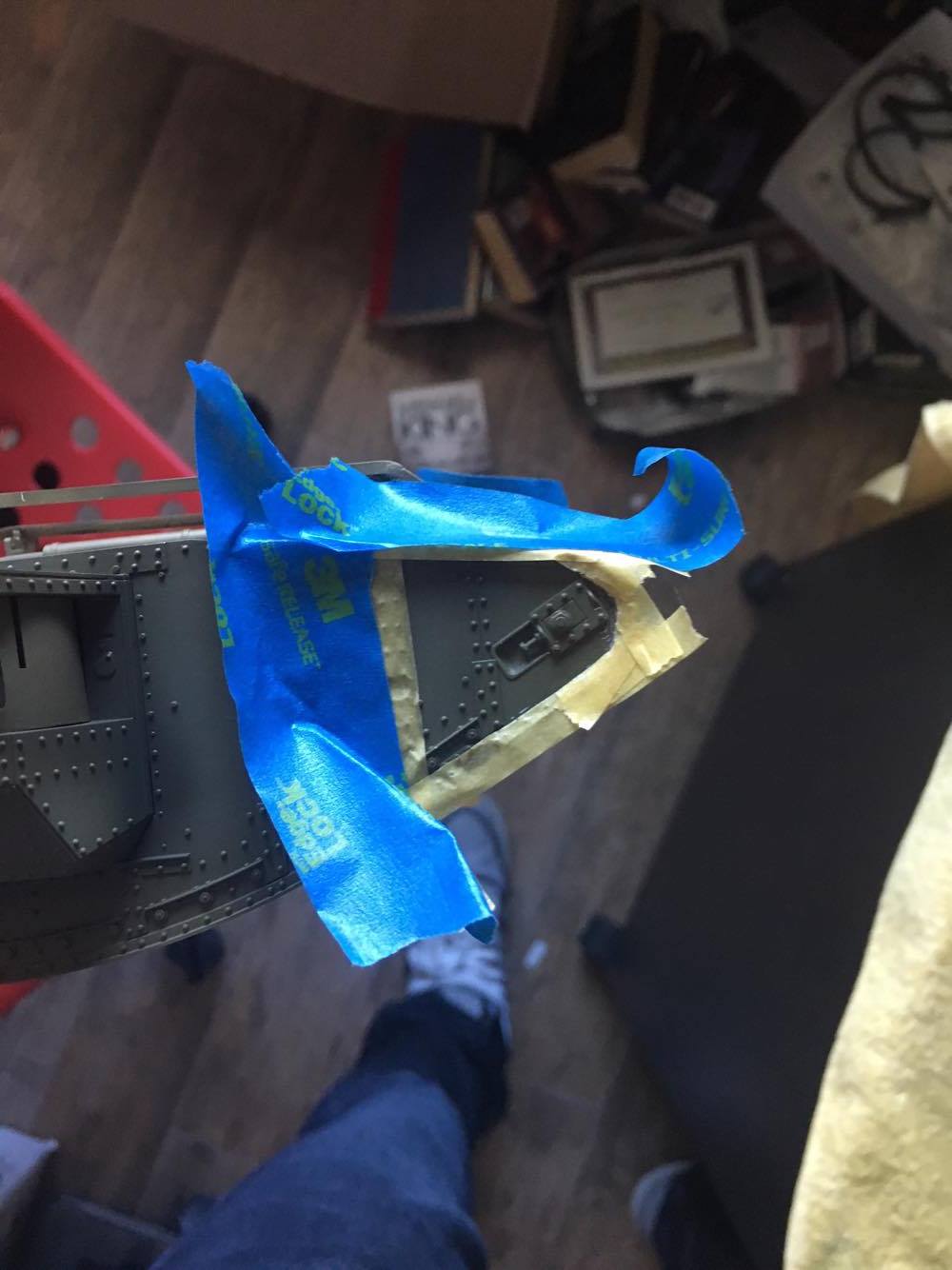 3. Сборка завершена и загрунтовать белым цветом. Картина боковые пушки было очень трудно, потому что они могут вращаться. Тем не менее, модель построена на довольно жесткие допуски и любое движение царапает краску. Я попытался сделать в отделке бронза, чтобы показать следы износа. Эта идея была в конечном итоге слом.
