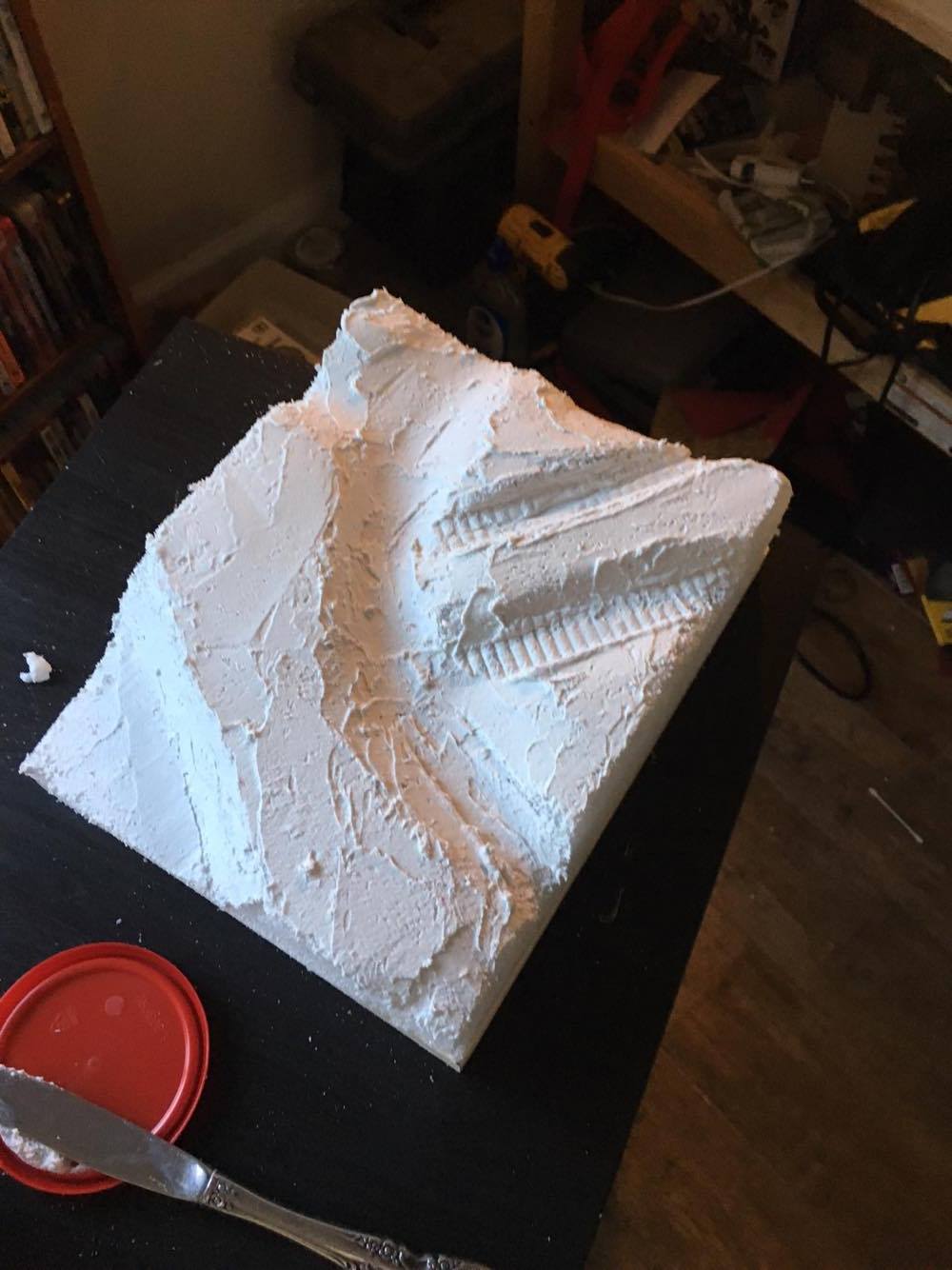 16. База была несколько слоев пенопласт приклеен к основанию дерева. Я побрил его в форму с различными лезвиями, наждачной бумагой, и т.д., пока я не нашел, что я форма, я был доволен.