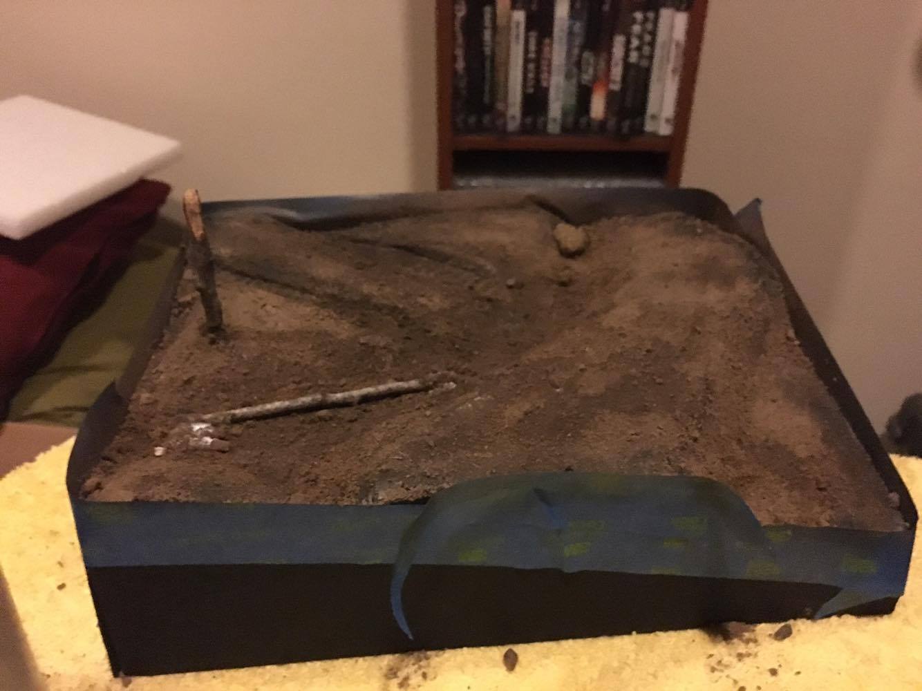 20. База была покрыта в смеси воды и клея ПВА. Просеиваемая загрязнения был добавлен на вершине, а также несколько камней, веток и т.д. не показаны: границы из художника борту был добавлен вокруг основания.