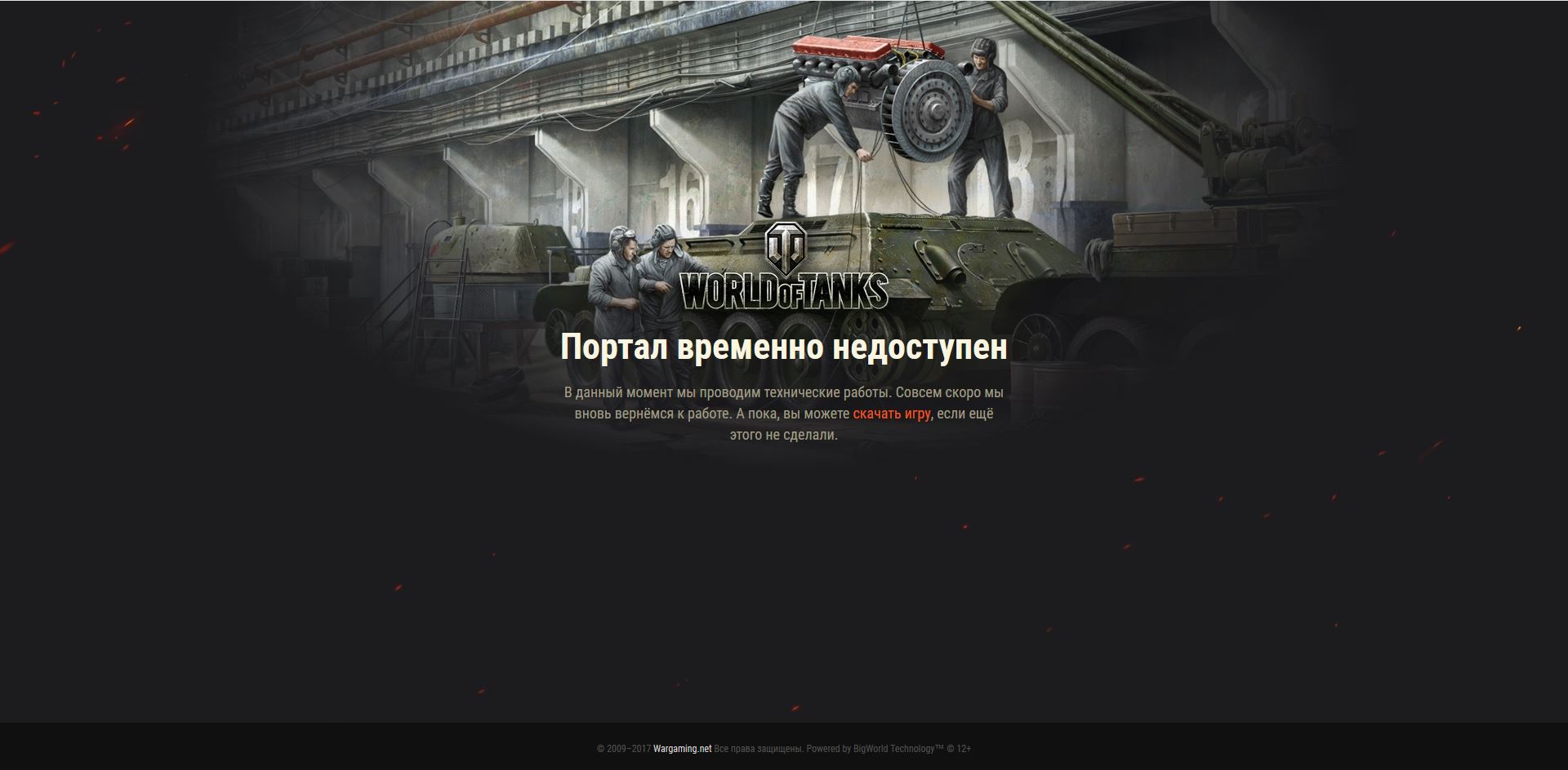 В связи с выходом обновления WoT 9.21 официальный сайт World of Tanks и игровые серверы недоступны 12 декабря 2017 года.