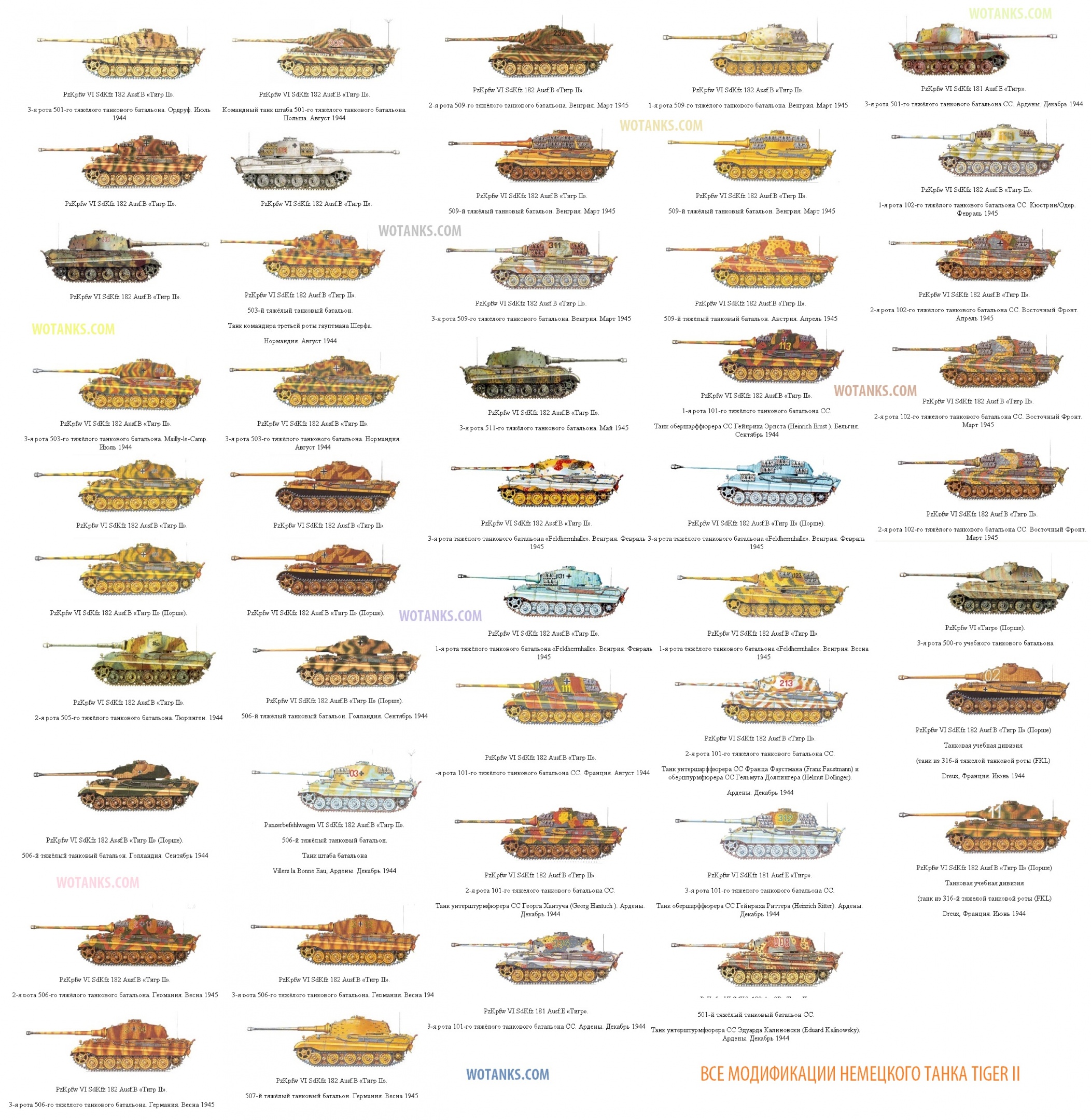 В этом материале мы собрали все когда-либо выпущенные модификации немецкого тяжелого танка Tiger II или "Королевский Тигр".